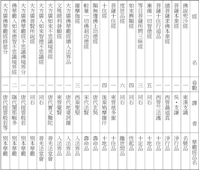 此外,華嚴經之異譯本(相當華嚴經之全部),則有下列三種: